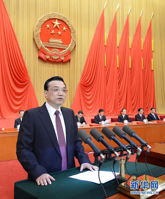 1月18日,中共中央、国务院在北京人民大会堂隆重举行国家科学技术奖励大会。胡锦涛、习近平、温家宝、李克强、刘云山出席大会并为获奖代表颁奖。这是中共中央政治局常委、国务院副总理李克强在会上宣读《国务院关于2012年度国家科学技术奖励的决定》。新华社记者刘建生摄