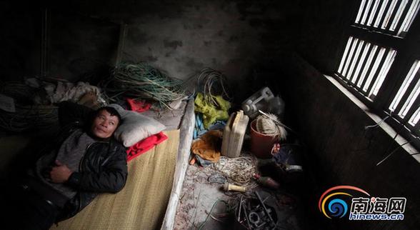 临时航标工韩群畴睡在简陋的卧室里。(南海网记者 张茂 摄)