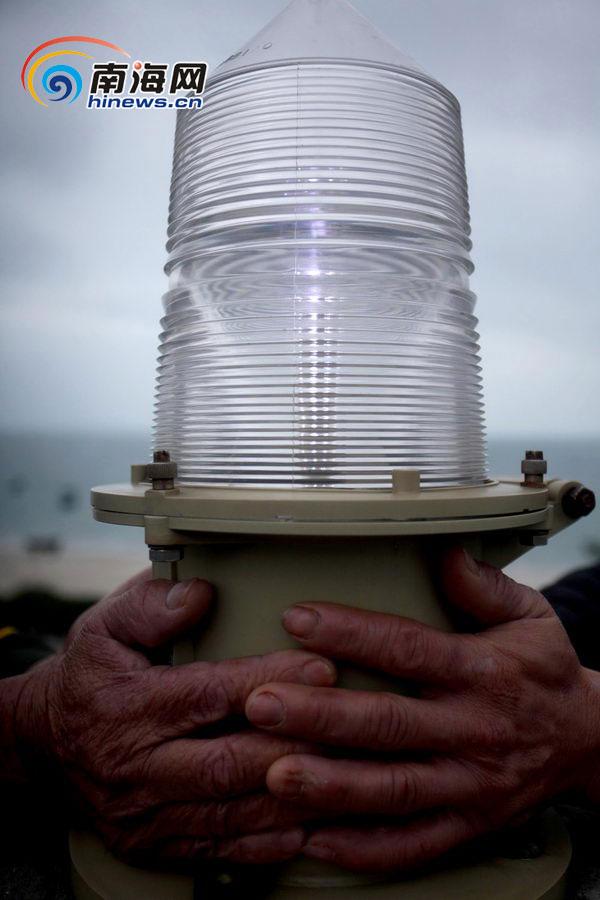 韩发光父子的手“呵护”着航标灯。(南海网记者 张茂摄)