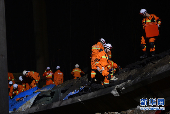 2月1日晚,消防队员在事故现场进行救援。记者从连霍高速义昌大桥爆炸坍塌事故救援现场获悉,该事故目前已经造成9人死亡,救援工作仍在紧张进行。新华社记者 赵鹏 摄