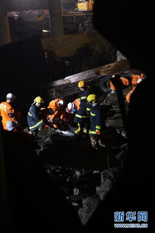 2月1日晚,消防队员在事故现场进行救援。记者从连霍高速义昌大桥爆炸坍塌事故救援现场获悉,该事故目前已经造成9人死亡,救援工作仍在紧张进行。新华社记者 赵鹏 摄
