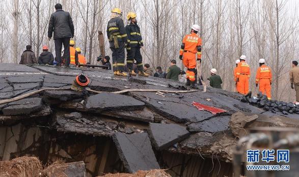 这是2月1日拍摄的事故救援现场。记者2月1日17时从河南省三门峡市获悉,当天上午发生爆炸坍塌的连霍高速义昌大桥事故。这次事故发生在当天上午8时52分,位置在连霍高速公路K741+900公里处。疑为运输烟花爆竹车辆发生爆炸,造成连霍高速义昌大桥南半幅桥面坍塌,北半幅桥板松动,连霍高速双向断行。被炸坍的桥梁高度30米,共被炸坍2个桥洞,长度达80多米。目前,消防官兵已经从现场清理出9辆大货车,坍塌物下面还压有多辆小轿车,具体数字不清楚。但他们估计,至少有25辆车坠桥。新华社记者赵鹏 摄