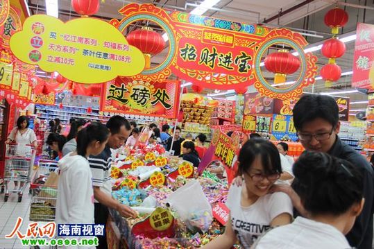 提醒,海口大型连锁超市在春节期间一样营业,除了除夕和春节晚上会提早关门,但是从初二开始就正常营业。
