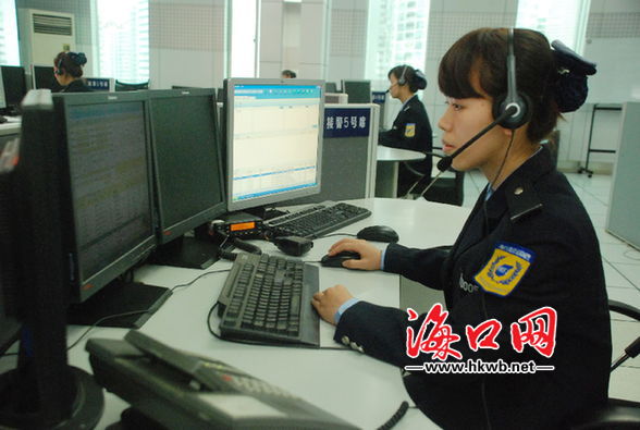 海口市公安局指挥中心的一线工作人员。见习记者朱佳莹 摄