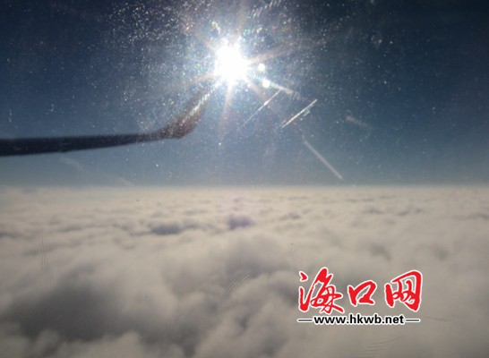 经过几番折腾,终于登机了。位置是在窗边,方便欣赏景色。飞机刚飞到平流层的窗外云层很厚,太阳被云层遮盖着。
