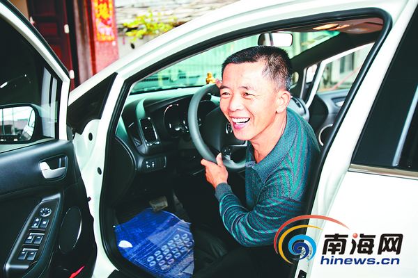 文昌全美村村民符永基向记者秀他的新车。 本报记者李幸璜摄