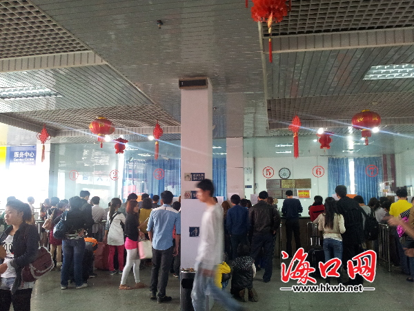海口网2月15日消息 (记者郑克姗 摄影报道) 初六是春节长假的最后一天,虽然节日气氛正浓,但在外地工作的人,为回到自己的工作岗位不得不提前踏上返程之路。
