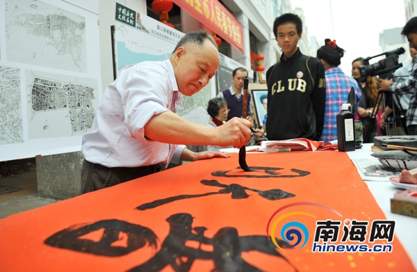 大年初六,居住在骑楼老街的书法家现场挥毫。(南海网记者秦彦摄)