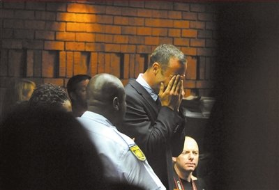 本报讯(记者周磊)昨天早上9点,两辆警车押送皮斯托瑞斯抵达比勒陀利亚地方法院。皮斯托瑞斯抵达时蒙着头,进入法庭后显得非常萎靡。