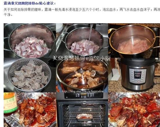刚开始,她习惯将自己做的菜拍照,传给远在中国的妈妈,让她看看自己都在做什么菜,吃什么饭,让她不必远隔万里为我的日常饮食牵肠挂肚,慢慢积累多了也会在美国的华人论坛和自己的美食博客上更新,她最出名的就是各式各样的排骨。