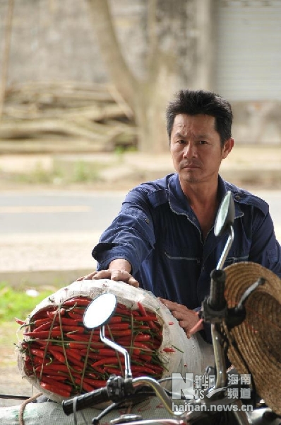2月20日,海南琼海市一名菜农来到收购站出售红泡椒。 新华社记者 魏骅 摄