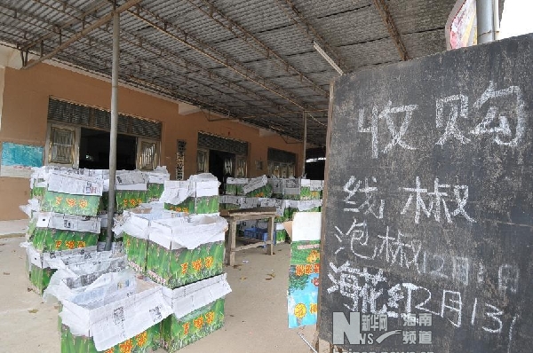 2月20日,在琼海市一瓜菜收购站,用来装辣椒的空箱子堆放在地上,但鲜有菜农前来出售辣椒。