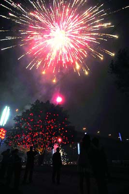 “来,小亮,把这个放了就回家吧!”昨晚在北滨路上,市民赵女士抱着5岁的儿子,让他放完最后的烟花棒,好早点回家,而小亮的爸爸还在旁边燃放最后剩下的几个旋转烟花。据赵女士介绍,她就住在附近小区,元宵节特地和老公、孩子一起出来放点烟花。不过,他们购买的烟花一共才100多元。