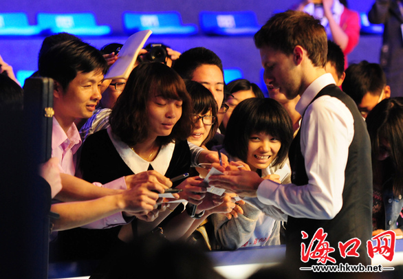 赛后,粉丝们争相找特鲁姆普签名。记者 张俊其 摄