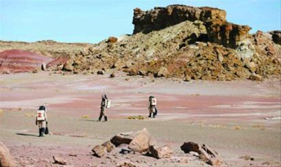 一群身穿宇航服的科学家行走在一片红色荒漠里,他们不时停下来收集岩石和土壤样品,或者做一些地形测绘。在任务完成之后,他们返回狭小的太空舱。这组画面并非来自有关火星生活的恐怖科幻片,而是在3月初拍摄于美国西部犹他州的沙漠。这些“宇航员”是志愿者,正在利用犹他州的汉克斯维尔沙漠与火星类似的地貌,模拟火星生活。