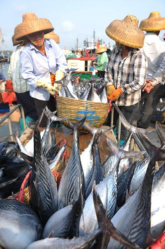 3月17日,海南省琼海市的渔民在码头卸载渔货。春暖花开时节,海南琼海渔民投入新一年的海上捕捞作业。今春前往南沙群岛捕捞作业的渔船达160余艘,大量收获的海产品除在海上进行交易外,每天还有二、三十吨运抵码头供应岛内市场。新华社发(蒙钟德摄)