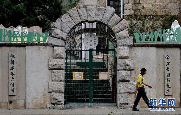 香港跑马地天主教坟场的一个入口(4月3日摄)。