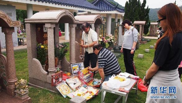 浩园位于香港新界粉岭和合石坟场内,专门安葬殉职香港公务员,多为警察和消防员。浩园于1996年启用,名字取“浩气长存”之意。2003年因非典去世的6名香港医务人员也安葬于此。又到一年清明时节,香港市民带着鲜花、瓜果、烤猪等祭品前往各大墓园,祭奠逝去的亲朋和先人。清明节在香港是法定假日,在这个中西合璧的城市里,因地域文化、宗族习惯、宗教信仰等不同,祭奠活动也各有特色。香港地少人多,寸土寸金,香港墓园的墓碑跟香港的房子一样,一个紧挨另一个,排得密密匝匝,许多墓园被高楼大厦包围,形成一道独特的风景。墓园周边的房地产也不会因此贬值。在香港,墓园分为政府管理的公众墓园与私人机构经营的墓园;此外,还有公办、私办的火葬场等。由于香港土地短缺,1976年香港政府停止处理允许永久土葬的私人坟场,并鼓励火化。根据香港食物环境卫生署政策,公众坟场土葬超过6年的骸骨必须捡拾迁移,以便节省土地资源。香港的一些墓园还有宗教上的区分,如基督教墓园、伊斯兰教墓园等。但无论信奉何种宗教,港人清明扫墓的习俗却是相同的,不同的只是祭奠方式。在将军澳华人永远坟场,扫墓市民摆放食物、点燃香烛、焚烧纸钱,祭拜逝者。而在跑马地的基督教坟场,则多见带着鲜花在墓前默哀祈祷的扫墓者。从革命家到教育家,从文坛巨匠到乐坛骄子,数百年来,长眠于香江的名人数不胜数。每到清明时节,人们来到蔡元培、萧红、黄家驹等人墓前,献上鲜花,表达对先辈的怀念或是对逝去偶像的哀思。近年来,网上祭扫也成为一种越来越受欢迎的绿色扫墓方式。香港食物环境卫生署开设“无尽思念”网站,公众可通过建立纪念网页来追忆和悼念挚爱的逝者。新华社发(高鸣 摄)