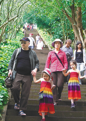游客参观海口火山口地质公园。见习记者 武威 摄