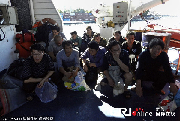 当地时间4月10日,被扣留的中国渔民抵达菲律宾巴拉望岛。图片来源:TMO / 东方IC