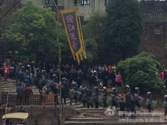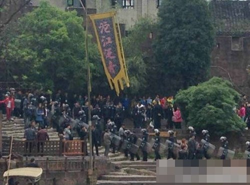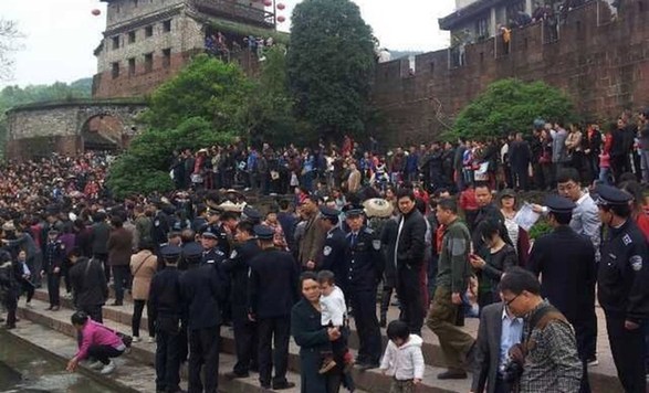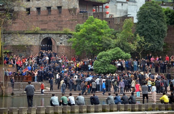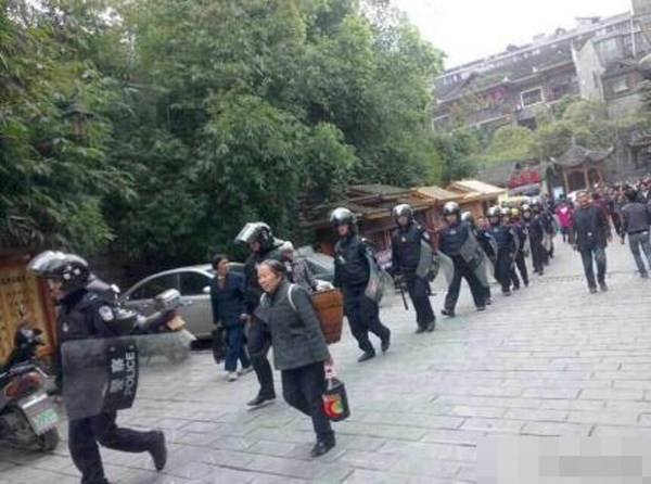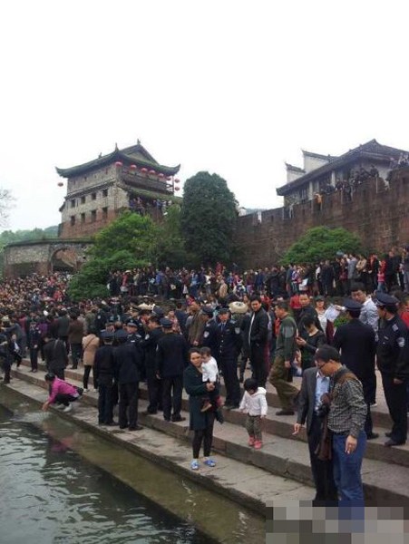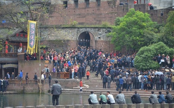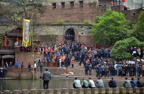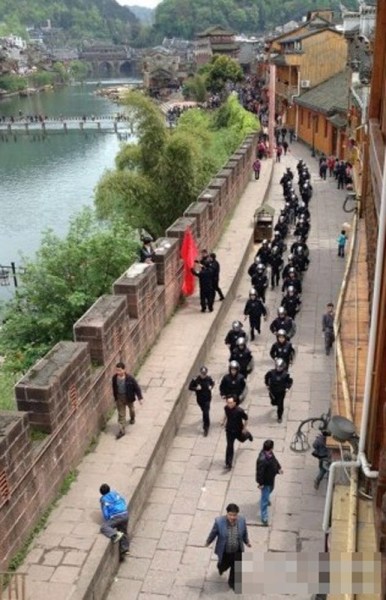 4月11日,凤凰古城,防暴警察向北门码头集结。