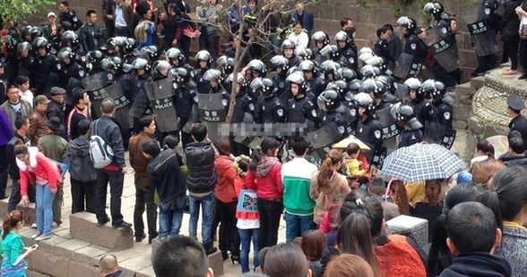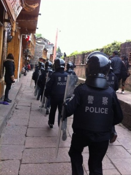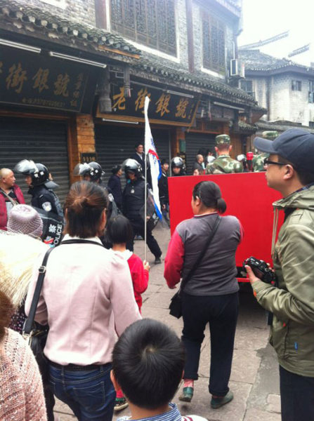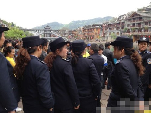 4月11日,凤凰古城,防暴警察严阵以待。