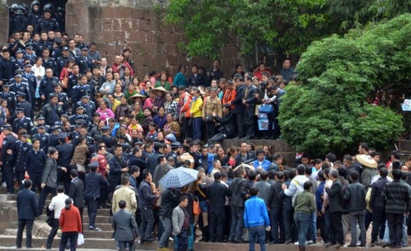 通报还称,由于有关部门长达两小时劝导仍然无效,围观人员越来越多。13时35分,县执法局依法清理旅游通道。其间,个别参与人员拒不配合维护秩序,与执法人员发生肢体冲突,被公安干警依法带离现场。