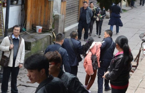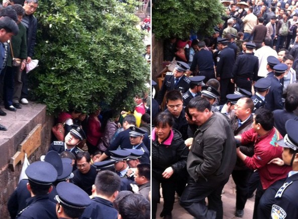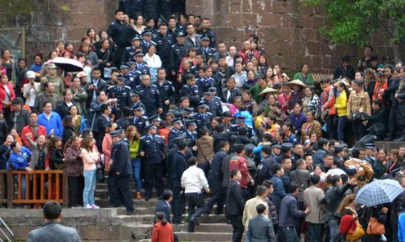 4月11日,凤凰古城,一名妇女被警方强行带走。