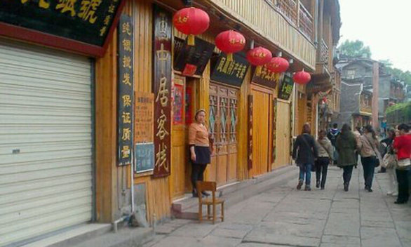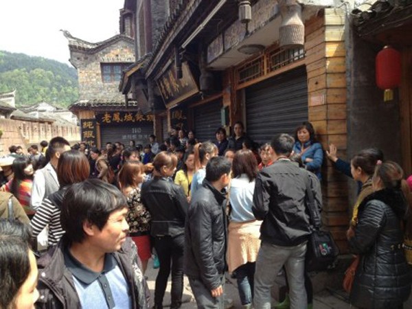 4月11日,凤凰古城,抗议“一票制”的商户。