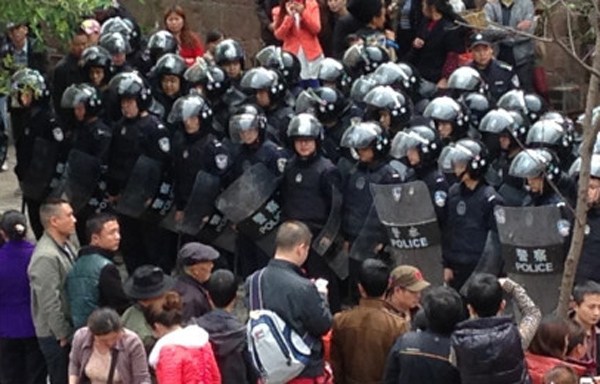 4月11日,凤凰古城,北门码头,防暴警察严阵以待。