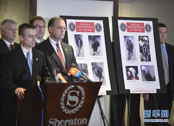4月18日,在美国波士顿举行的新闻发布会上,警方公布波士顿爆炸案两名嫌犯图像。新华社记者张军摄