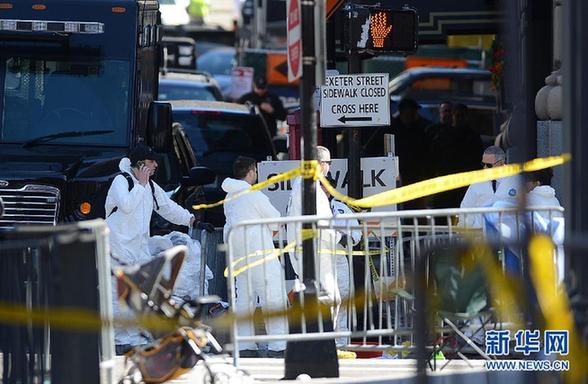 4月17日,美国联邦调查局的工作人员在波士顿爆炸现场进行调查。当天,多家美国媒体分别援引来自执法机构的消息源说,针对波士顿爆炸案的调查工作已出现重要进展,调查人员已通过图片和视频锁定了一名可能制造波士顿爆炸案的犯罪嫌疑人。截止到当日,爆炸现场仍被封锁,调查工作在持续进行。新华社记者王雷摄