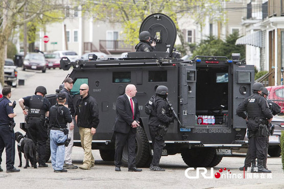 目前,警方正在波士顿郊外的沃特敦对这名仍在逃的嫌犯进行大规模搜捕。波士顿警方发布的消息称,这名在逃嫌犯全副武装,非常危险,是一名恐怖分子。警方要求沃特敦居民锁上家门,不要让任何人进入。