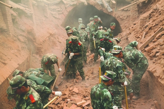 8点30分,当他们抵达清仁乡后,砖厂的工人拦住去路,称砖工段吉红被埋在废墟下。副政委古林决定,留下40人队伍立即开展施救,其他战士继续到其它地方开展营救。