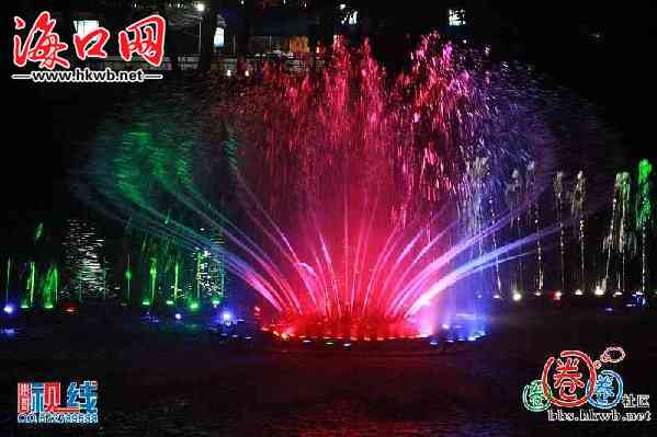 海口80米音乐喷泉异彩纷呈 丰富市民晚间娱乐生活