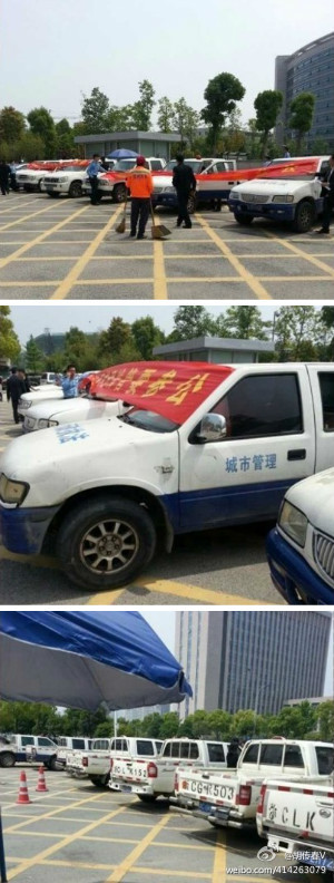 昨天上午,大批城管执法车辆在温州乐清市行政管理中心门口一字排开,拉起横幅要求享受事业单位编制和公务员待遇;“微博乐清”回应:乐清市市政园林局下属的30余名城管队员聚集在乐清市行政管理中心门口,要求解决城管队员身份参公问题。经劝导,该批队员已于上午11点35分散去。