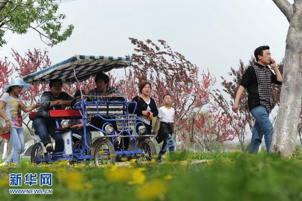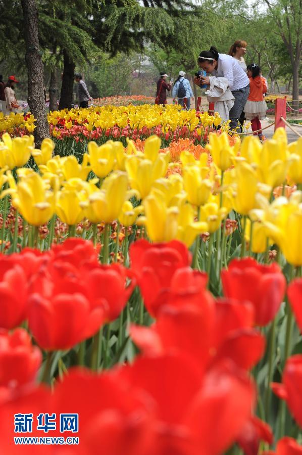 4月29日,游人在河北省石家庄植物园内游览。当日,全国各地群众共度“五一”小长假首日。 新华社记者 王民摄