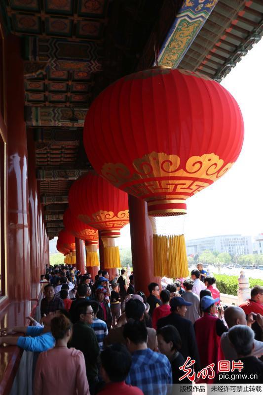 当日是“五一”小长假第二天,北京天安门、故宫迎来“五一”客流高峰。(王岩棣摄/光明图片)
