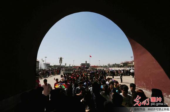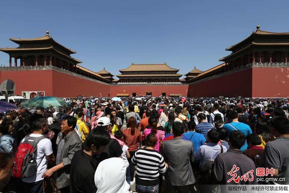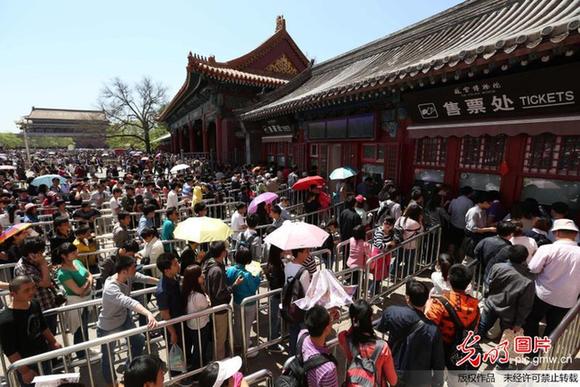 当日是“五一”小长假第二天,北京天安门、故宫迎来“五一”客流高峰。(王岩棣摄/光明图片)