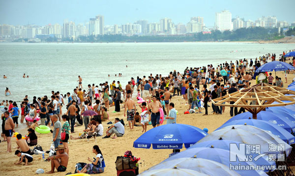 4月30日,游客在海口假日海滩游玩。新华社记者 郭程 摄