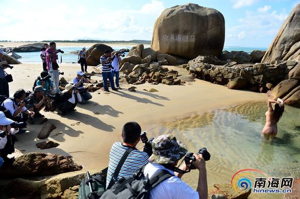 4月29日,“美丽海南人体摄影”活动在万宁港北开拍,摄影家们被这美景吸引,不停的按下手中相机的快门。