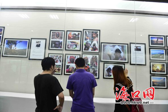 2013年首届海南省青年摄影联展在海口市博物馆开展。图为观众在观看作品。
