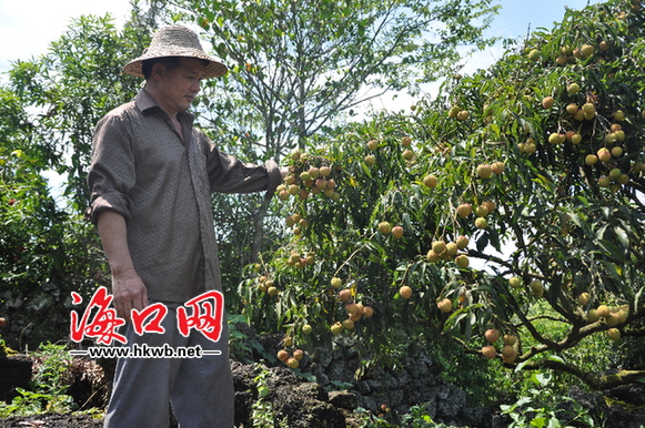 海口网5月23日消息 (记者 谢大强 特约记者 吴彭保)长在火山石间的荔枝树枝头挂满沉甸甸的果实,压弯了树梢,这是记者昨天在秀英区永兴镇永德村委会儒东村看到的景象。据永兴镇农业服务中心初步估产,今年该镇荔枝总产量达850万斤左右,创历史丰产之最。