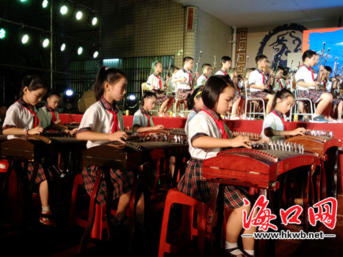 英才小学的学生正在演绎精彩的民乐表演。