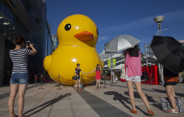 “六一”我国多个城市现山寨大黄鸭 造型各异