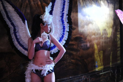 2013年6月15日,安徽合肥,第三届国际胸模大赛决赛现场。此前,通过一系列的海选、网络投票、复赛、半决赛,最终产生胸模大赛12强佳丽,晋级第三届国际胸模大赛总决赛。