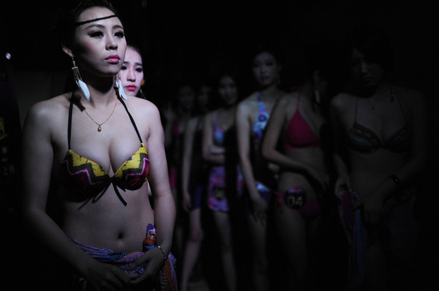2013年6月15日,安徽合肥,第三届国际胸模大赛决赛现场。此前,通过一系列的海选、网络投票、复赛、半决赛,最终产生胸模大赛12强佳丽,晋级第三届国际胸模大赛总决赛。