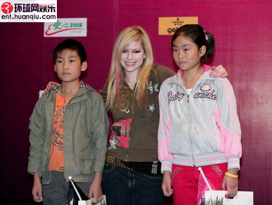 艾薇儿与灾区小朋友合影