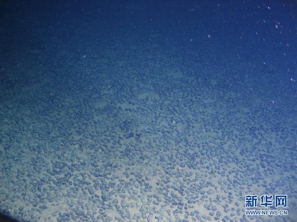 7月3日,正在执行首个试验性应用航次的“蛟龙”号载人潜水器在南海的“蛟龙海山”下潜,“蛟龙”号在海底发现了大面积铁锰结核。新华社发