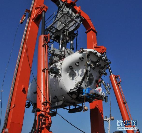 当日,在南海执行首个试验性应用航次的“蛟龙”号载人潜水器在“蛟龙海山”下潜,这个潜次是科学下潜,主要目的是到海山区提取岩石等样本,并进行海底地形测绘与测量。这次是“蛟龙”号首个试验性应用航次的第6次下潜,也是在“蛟龙海山”的第2次下潜。新华社记者 张旭东 摄